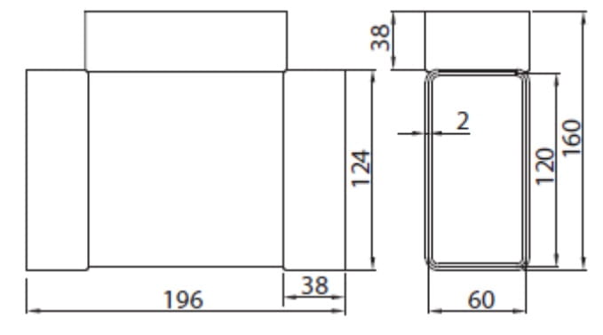 Trójnik poziomy płaski 122x60mm PCV