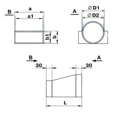 VENTS łącznik przekrojów zmiennych w jednej płaszczyźnie bocznej