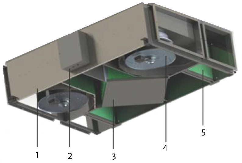 1. Obudowa centrali wykonana ze stali i zabezpieczona przed korozją powłoką z ocynku. Wnętrze urządzenia jest izolowane akustycznie i termiczne 10 milimetrową pianką polietylenową.