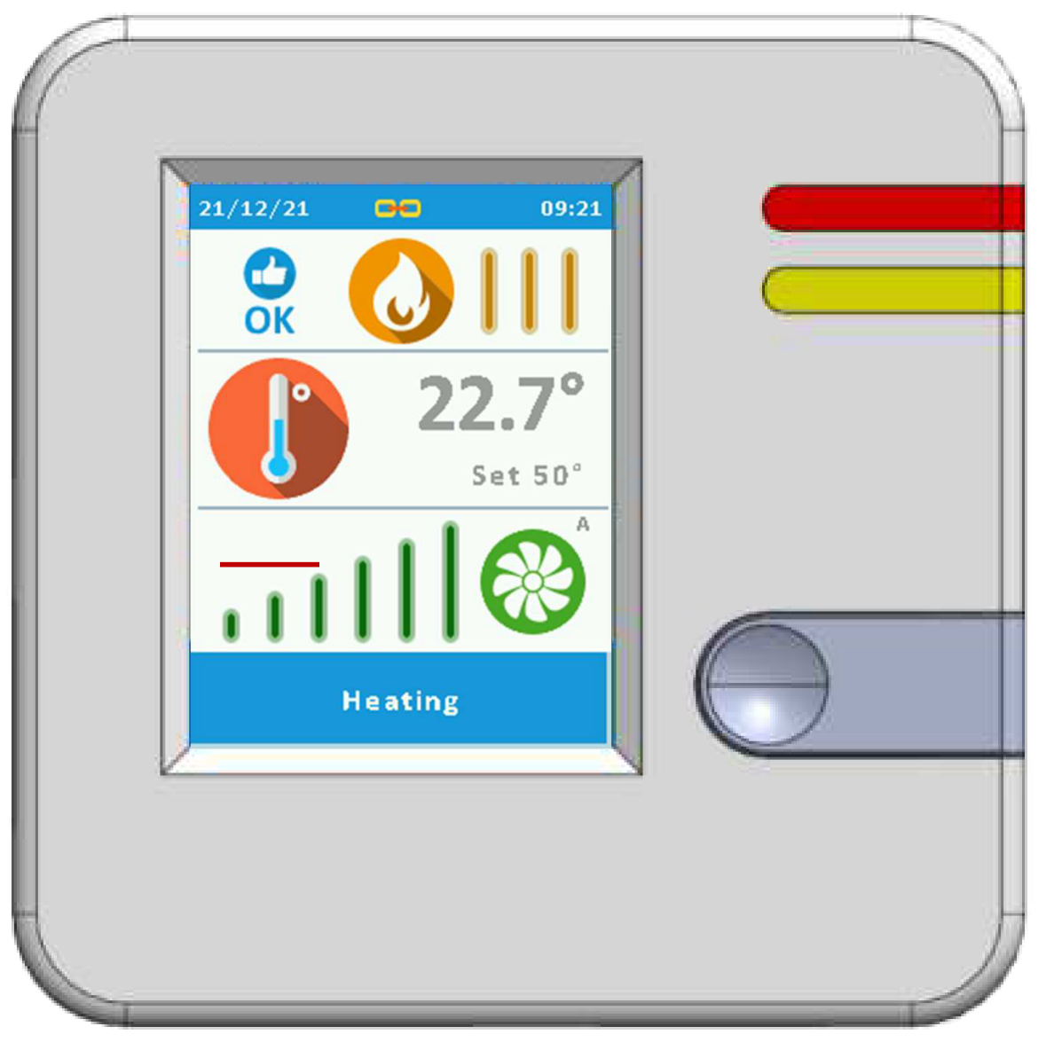 Prosty w obsłudze dotykowy sterownik pomieszczeniowy umożliwia: