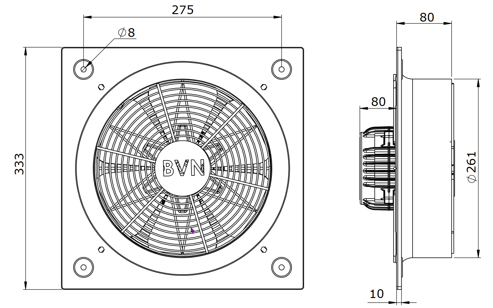 - Wentylator BSMS 250-2K BVN jest wentylatorem osiowym.
