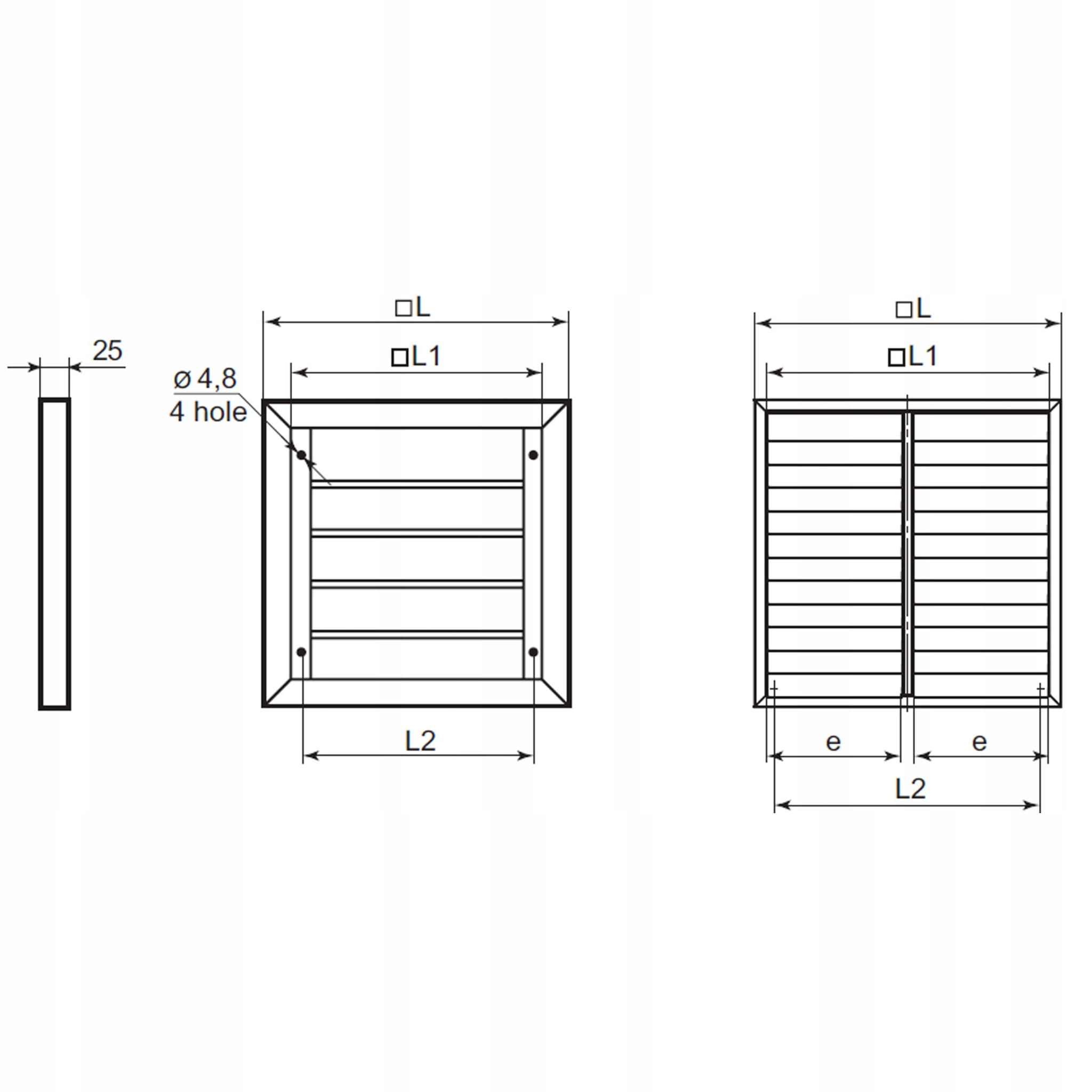 | WYMIARY [mm] Przekrój wewnętrzny: 216x216 L: 300 L1: 250 L2: 236 |