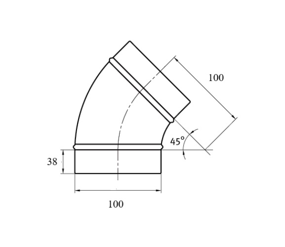 Kolano tłoczone TICKA ocynk fi 100 mm 45 stopni system rura spiro