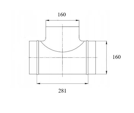 Trójnik symetryczny 160-160-160 wentylacyjny TICKA tłoczony do rur spiro