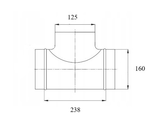 Trójnik symetryczny wentylacyjny 160-125-160 TICKA tłoczony do rur spiro