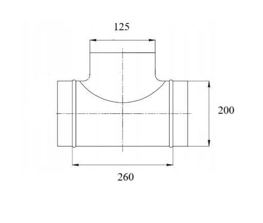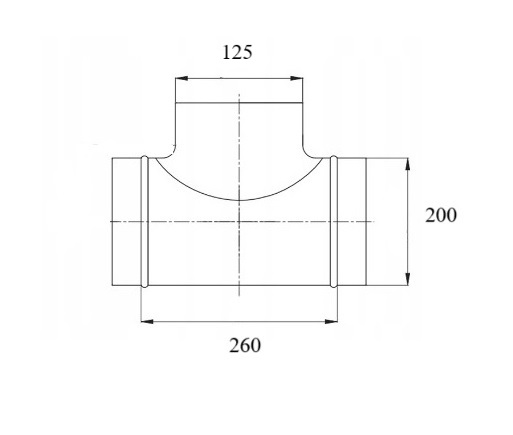 Trójnik symetryczny wentylacyjny 200-125-200 TICKA tłoczony do rur spiro