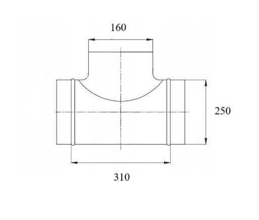 Trójnik symetryczny wentylacyjny 250-160-250 TICKA tłoczony do rur spiro