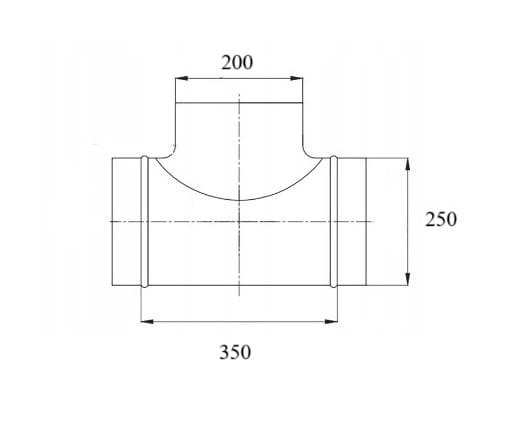 Trójnik symetryczny wentylacyjny 250-200-250 TICKA tłoczony do rur spiro