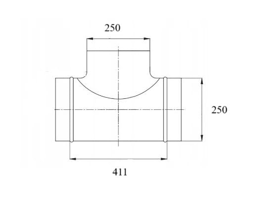 Trójnik symetryczny wentylacyjny 250-250-250 TICKA tłoczony do rur spiro