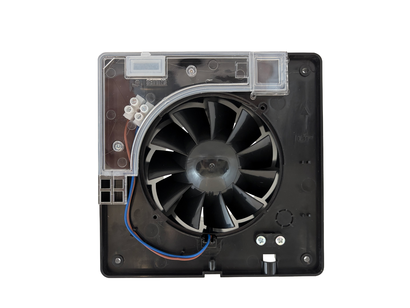 Wentylator HOKURO OKU BP-100 S posiada klapę zwrotną wykonaną z elastycznego materiału, która skutecznie zapobiega cofaniu się powietrza z systemu wentylacyjnego do wnętrza pomieszczenia.