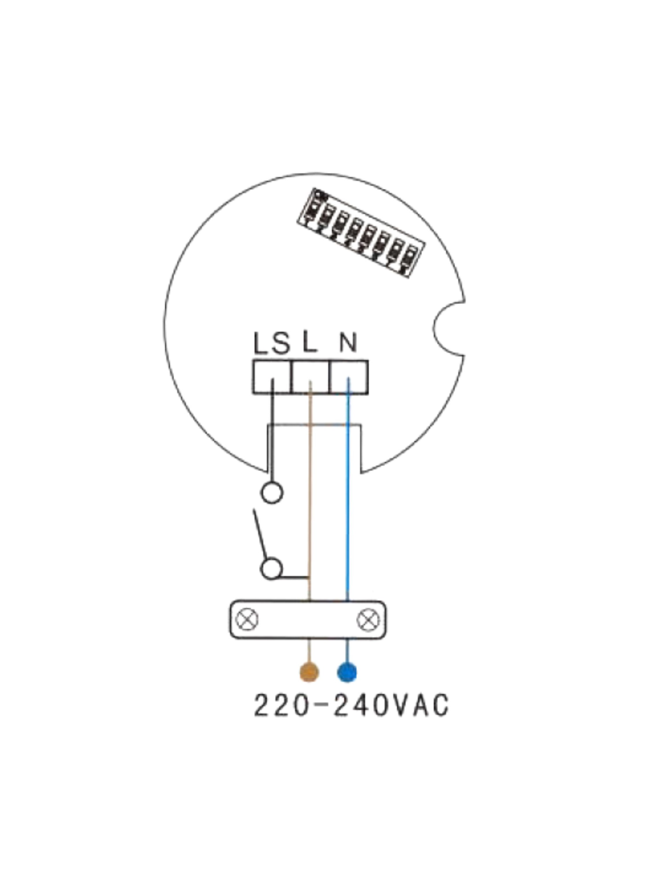 - LS: przewód fazowy z przełącznika