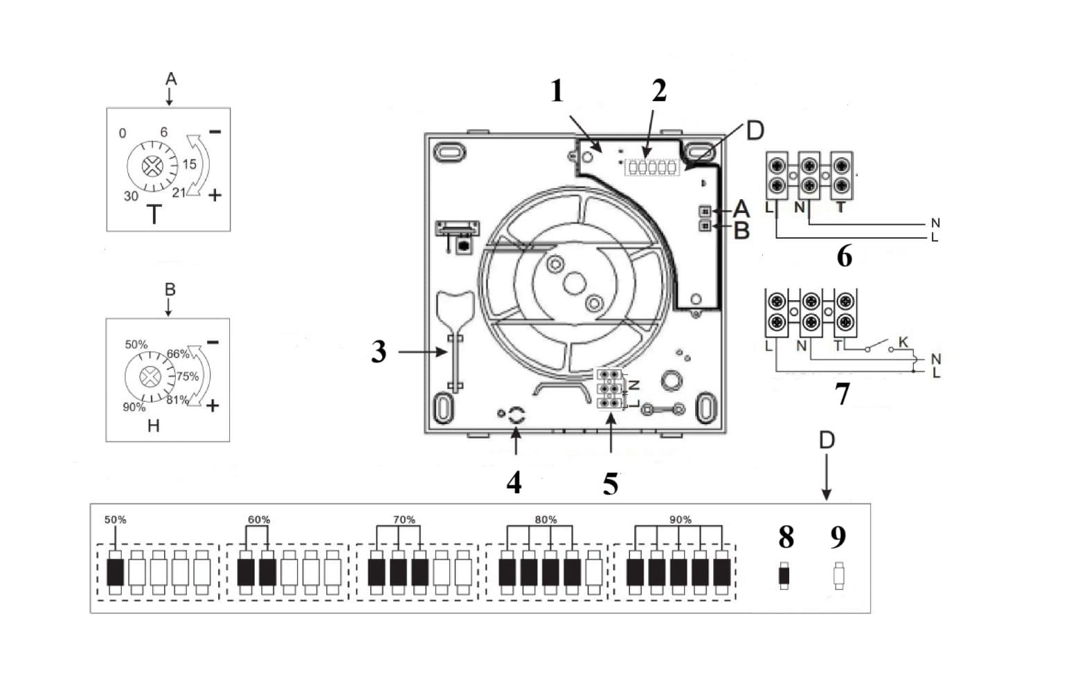 ☑️ HIGROSTAT (czujnik wilgotności) - umożliwiający regulację wilgotności względnej w zakresie: